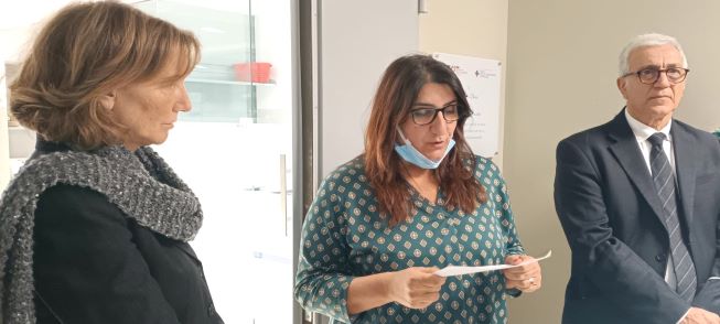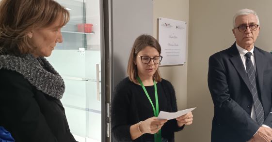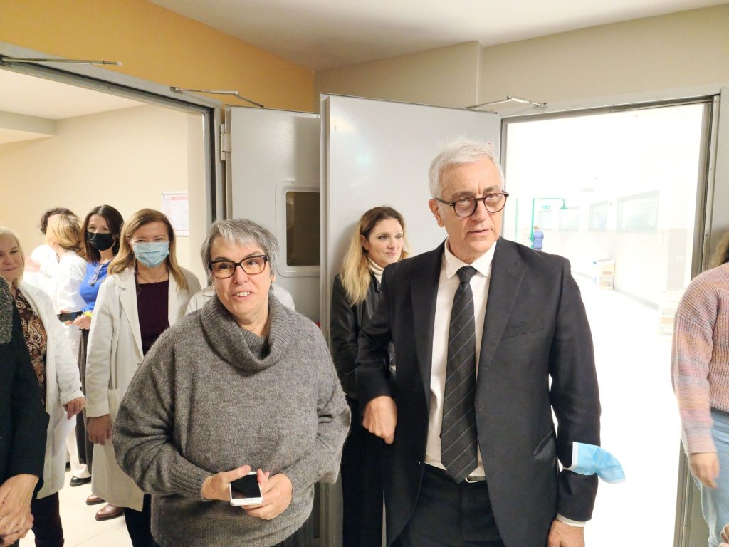 “E’ questo un momento felice e non allo stesso tempo – dichiara Ciliberto.- Felice perché inauguriamo un’area laboristica nuova, bella e confortevole dedicata alle colture cellulari. Nel frattempo ricordiamo due persone a noi care, Daniela Bona e Marianna Desideri che oggi avremmo voluto con noi. Voglio ringraziare i ricercatori che hanno avuto l’idea di dedicare questi spazi alle nostre amiche. In particolare voglio ringraziare Silvia Soddu e Donatella Del Bufalo che sono state le ideatrici principali dell’iniziativa con la partecipazione di tutti. Daniela e Marianna hanno lavorato con impegno e per tantissimo tempo nei nostri Istituti, purtroppo non sono riuscite a “godere” del frutto del loro lavoro.  Daniela la ricordo molto attiva e determinata, una figura che si è spesa davvero tanto nel processo di stabilizzazione di quella che noi chiamiamo la Piramide dei Ricercatori.”
