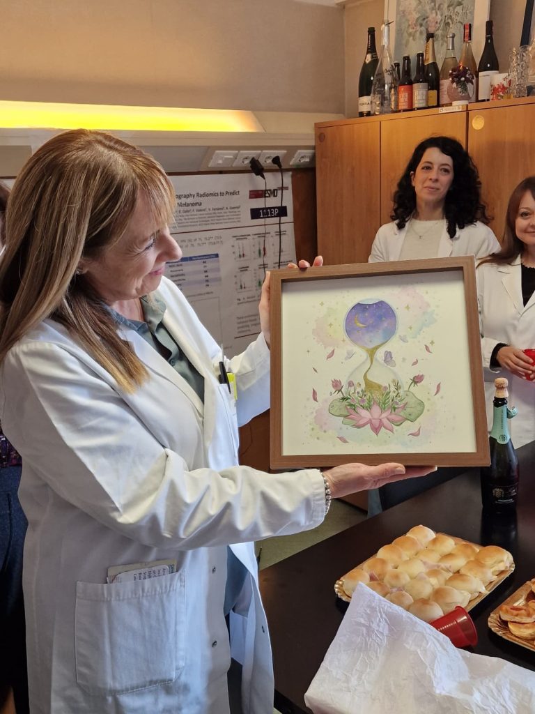 La famiglia ha inoltre donato alla UOSD un quadro di forte valore simbolico: una clessidra della vita, in cui il tempo che scorre si trasforma in rinascita, dal buio alla luce.