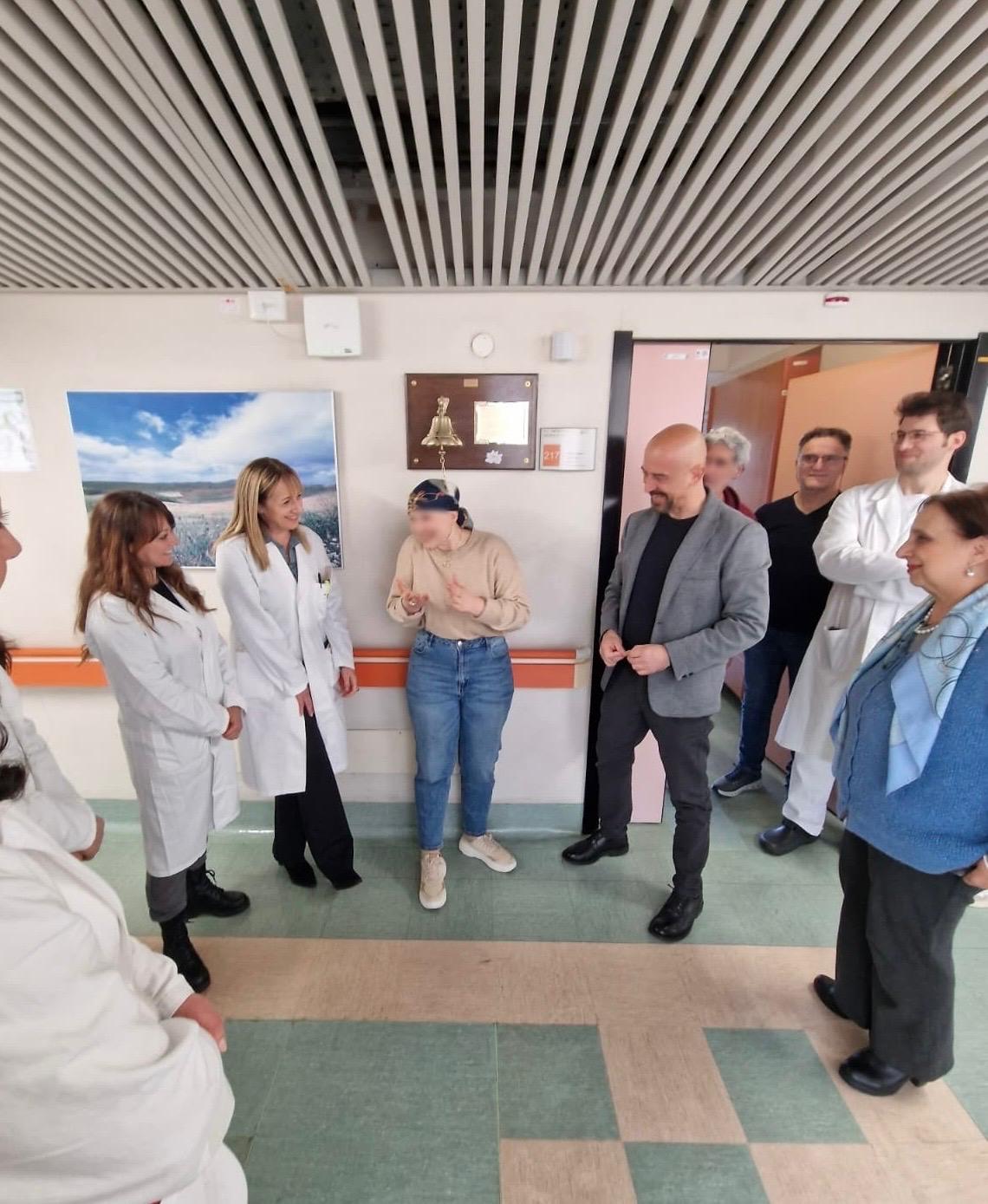 Nei corridoi della UOSD Sarcomi, Tumori Rari dell’Istituto Nazionale Tumori Regina Elena, il suono della Campana del Sollievo ha accompagnato un momento che resterà nella memoria di tutti.